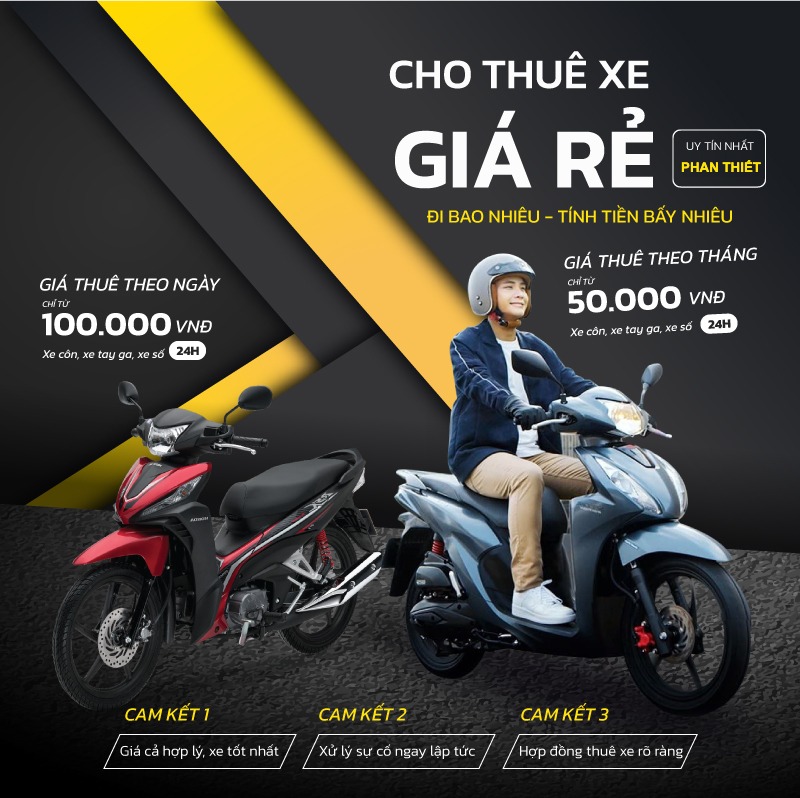 Chúng tôi hiểu cảm giác của người đi thuê xe máy phải bỏ ra một số tiền để có được một chiếc xe đủ tốt, không gặp rắc rối khi đi trên đường. Tuy nhiên thật khó để tìm được một đơn vị cung cấp dịch vụ cho thuê xe uy tín, chất lượng hiện nay. Cửa Hàng Cho Thuê Xe Máy Phan Thiết Tâm chung sẽ là đơn vị mang lại dịch vụ tốt nhất cho bạn. Chúng tôi mong muốn mang lại sự tiện lợi, ổn định, tiết kiệm chi phí, thời gian cho quý khách hàng đến du lịch, làm việc cần thuê một chiếc xe máy để sử dụng ngắn hạn.